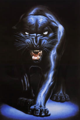 O něm: Je silný a rychlý a je to zabiják. Potuluje se po mrtvém lese, kde našel domov, mezi jinými "zlými" tvory. Jeho srst je černá, modře se leskne. V mrtvém lese se skoro nedá spatřit, protože mimo jiné dobře ovládá umění skrývání. Často loví jen ryby, protože v mrtvém lese se moc dobře nedá nějaký tvor ulovit. Samozřejmě existují i slabí, ale je jich málo. Zde platí zákon přírody. Buď přežiješ, nebo zemřeš. Jinak to nejde.Nemá žádné slitování a zabije každého, kdo se mu postaví do cesty. Vždy tomu tak ale nebývalo. Dřív byl milý a hodný, než potkal jakéhosi vlka, říkajícího si Phoenixův učeň. Od té doby je krutý a bezcitný.